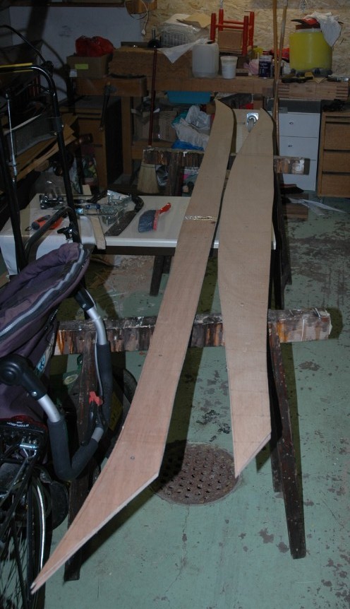 Optimierungen: Da das Boot ja aller Wahrscheinlichkeit nach farbig lakiert werden soll, habe ich je die beiden Planken auf eine Dachlatte geschraubt. Das hat folgenden Zweck: