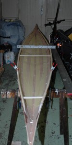 eine Arbeit, die ich ohne Kinder mache ist das Ausrichten und Nacharbeiten. Damit diese Arbeit schnell und effektiv vonstatten geht habe ich es alleine gemacht. Glücklicherweise habe ich nur die Stelle am Bug nacharbeiten müssen. Dazu musste ich lediglich das Boot umgekehrt auf die Böcke legen und vorn nochmals “auf machen”. Danach konnte ich die Kiellinie nachhobeln und die Kurve zur Decksplanke nacharbeiten. Das geht am Besten mit dem kleinen Einhandhobel, einem Messer und einem Ziehhobel.
