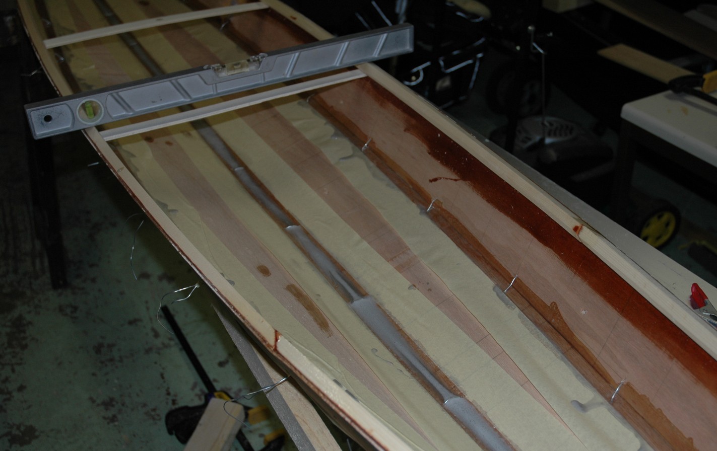 Im Bild oben sieht man das mit Silica angedickte Epoxy in den Nähten Wenn sich die Drähte nicht herausziehen lassen, bleiben sie einfach im Boot.